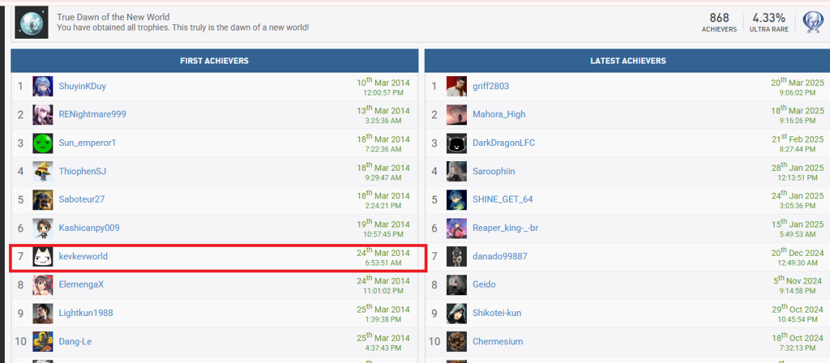 順道一說, TOX裡面白金獎牌裡面, 北美版本(NA)的, 我(kevkevworld)可是全球第十五位(最快)拿到的喔 (PSN)